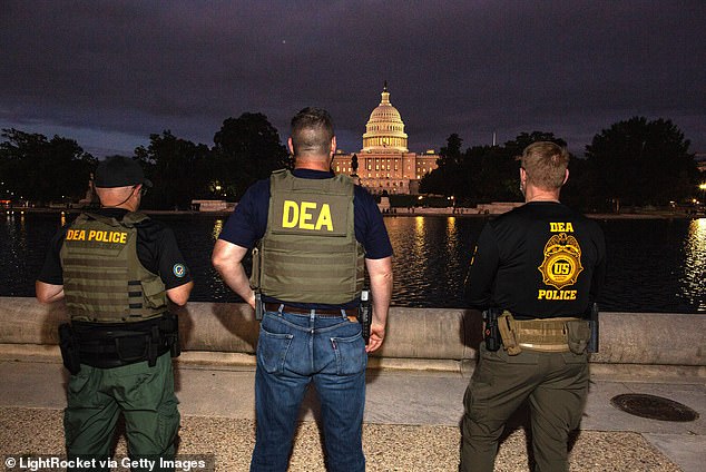 The DEA wrote that he and 14 other unidentified individuals 'are involved in illegitimate wire transfers, which are tied to illicit drug and/or prostitution activities occurring in the US Virgin Islands and New York City.' DEA agents are pictured