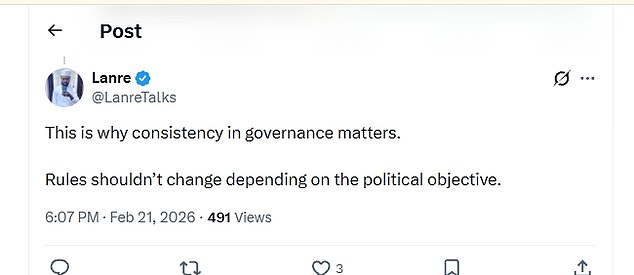 'This is why consistency in governance matters. Rules shouldn’t change depending on the political objective,' one comment read.