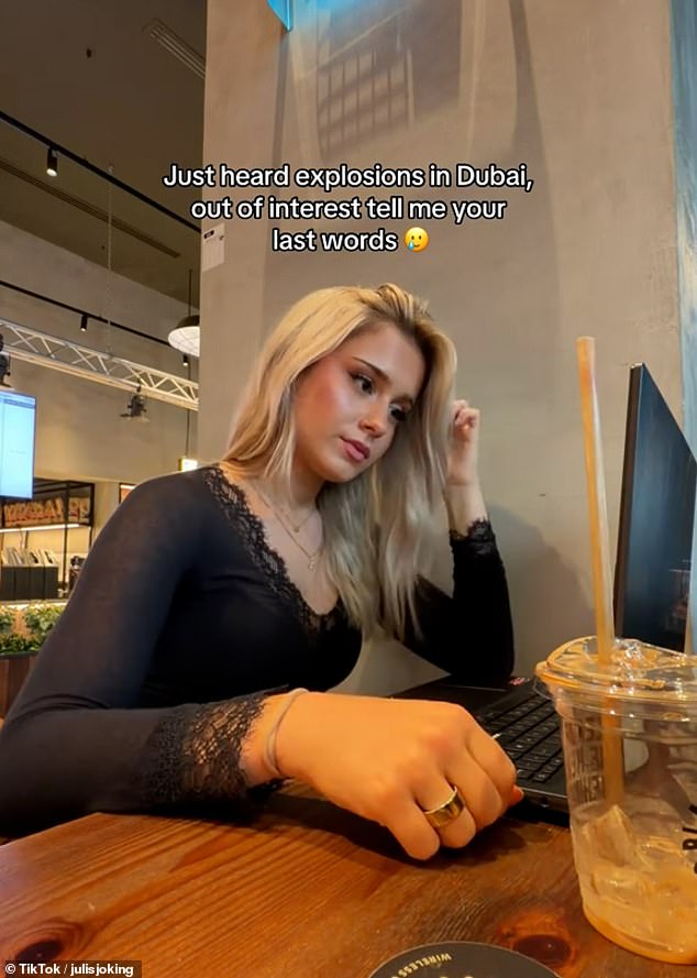 18-year-old influencer Julis, shared a clip of herself working on a laptop in a café, shortly after 'hear[ing] explosions in Dubai'.