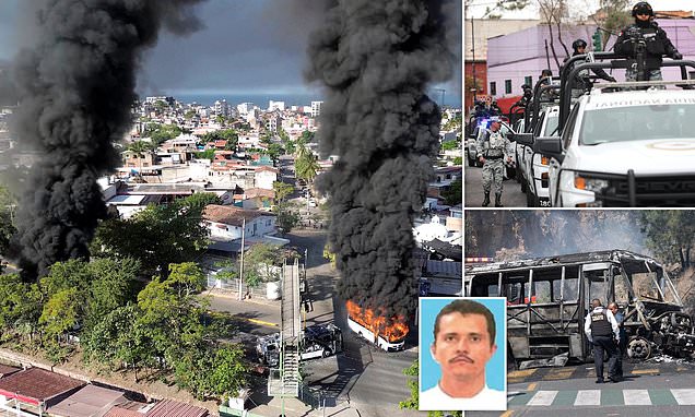 Videos circulating on social media showed plumes of smoke billowing over the tourist city of Puerto Vallarta, and people sprinting through the airport of the state's capital in panic.