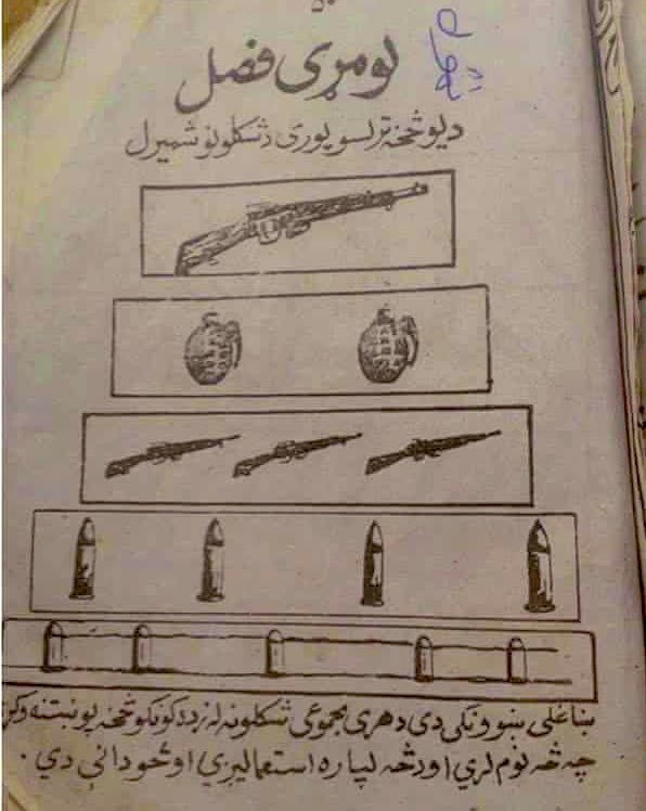 Published in the dominant Afghan languages of Dari and Pashtu, the textbooks were developed in the early 1980s under an AID grant to the University of Nebraska-Omaha and its Center for Afghanistan Studies. The agency spent $51 million on the university’s education programs in Afghanistan from 1984 to 1994… The primers, which were filled with talk of jihad and featured drawings of guns, bullets, soldiers and mines, have served since then as the Afghan school system's core curriculum.“, (Washington Post, 23 March 2002)