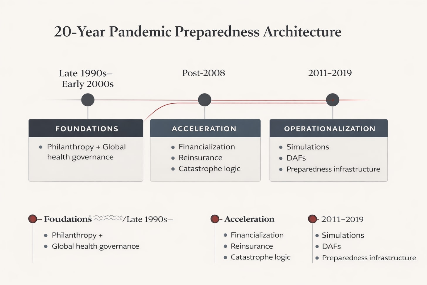 Following the 2008 financial crisis, this framework rapidly accelerated—expanding through reinsurance markets, parametric triggers, donor-advised funding structures, and global simulations—years before COVID-19 made the architecture visible to the public.