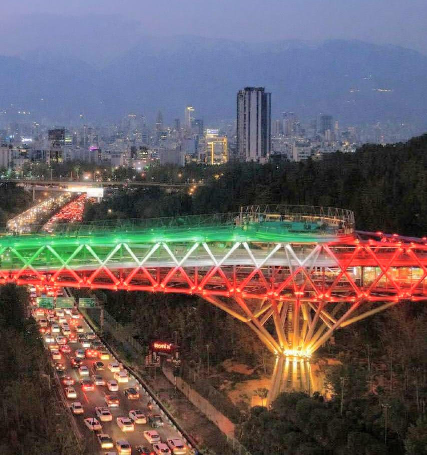 Azadi tower in #Tehran lit up in the colors of the Iranian flag on eve of anniversary of Islamic Revolution victory. pic.twitter.com/zjgZNKFl7u