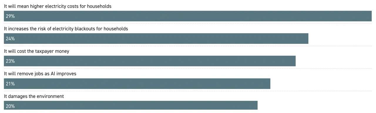 Americans see downsides, though electricity costs and the risk of blackouts ranks higher than AI taking jobs or data centers damaging the environment:
