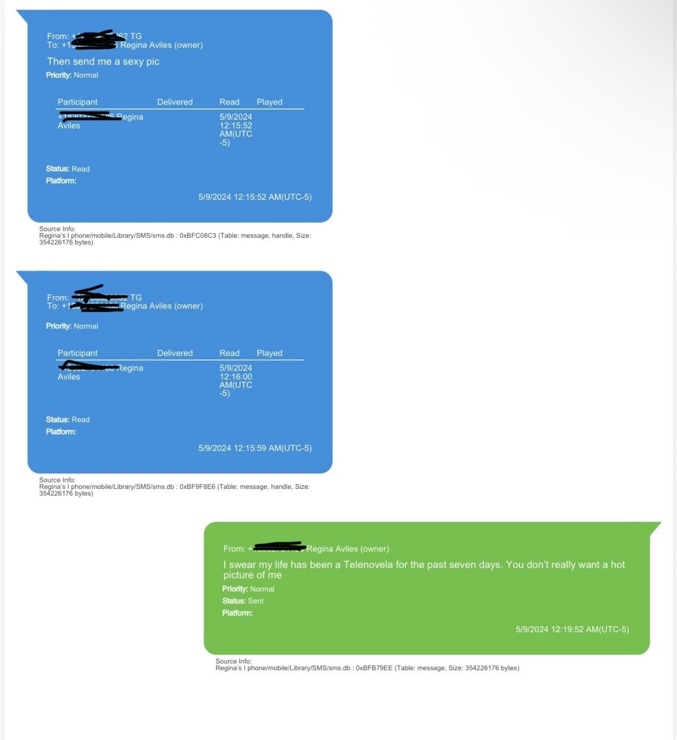 I have now seen some of the text messages between Tony Gonzales and his late aide, Regina Santos-Aviles.