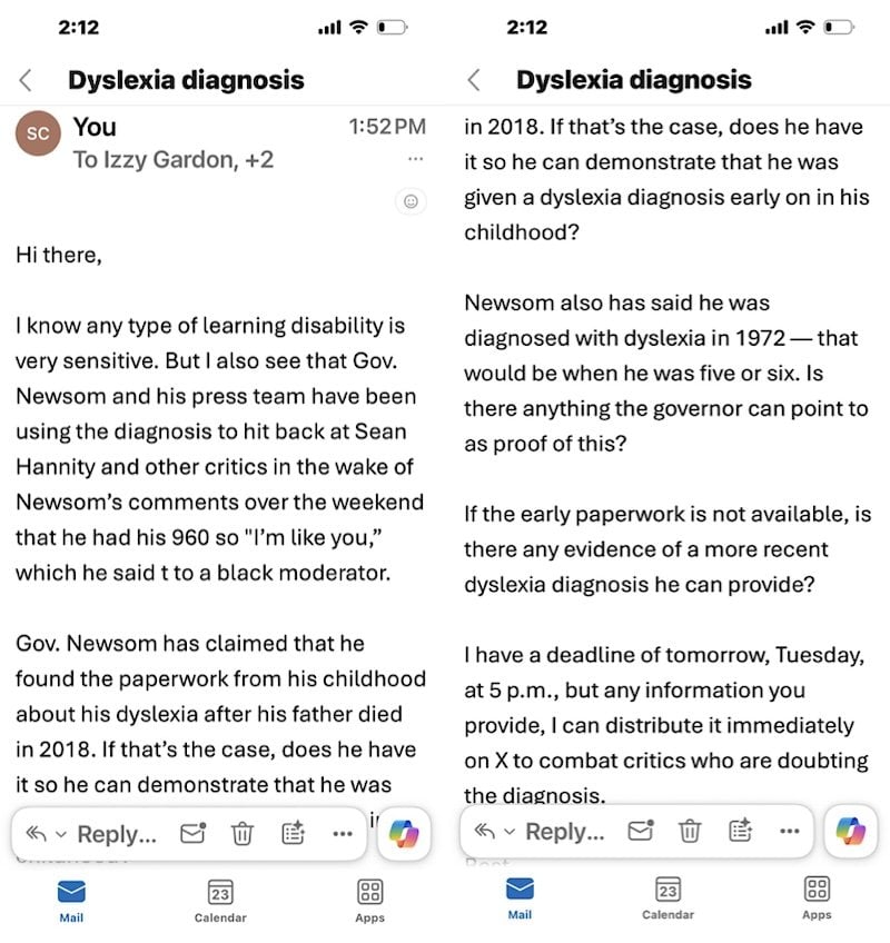 “Newsom has said that he rediscovered these childhood records in recent years, after his parents died. Given that he uses this diagnosis for political purposes, I think it’s reasonable to ask for corroboration.”