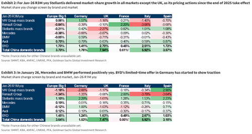 Goldman analyst Christian Frenes released the latest Chinese OEM Competition Monitor, which covers January registrations of Chinese EVs across Europe.