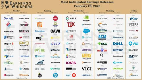 While much digital ink has been spilled on the Supreme Court's striking down of Trump's IEEPA tariffs and the consequences of this decision (see "Full Analysis Of The Supreme Court IEEPA Decision: How It Impacts The Economy, Policy And Markets"), a lot more is on deck for this week when we will also have more geopolitical headlines to contend with, as the latest round of US-Iran talks is expected in Geneva on Thursday. The talks come amid a recent buildup of US forces in the region and yesterday the New York Times was the latest outlet to report that Trump is considering an initial targeted strike against Iran in the coming days, which could be followed by a larger attack if Iran does not give in to US nuclear demands. Other highlights for the week ahead include the State of the Union address in the US (late tomorrow), US PPI and preliminary CPIs in Europe (both Friday). In earnings, the focus will be on Nvidia, Salesforce (both Wednesday) and Home Depot (tomorrow). Nvidia’s earnings could be the most important of these but expect lots of headlines from the State of the Union speech.