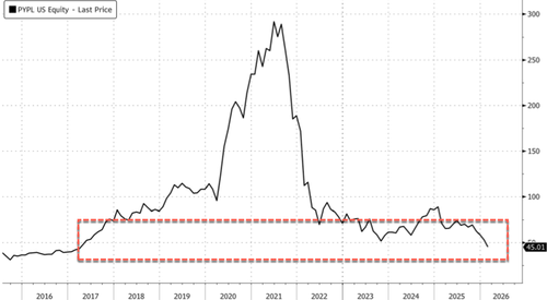 Bloomberg notes a leadership shakeup of the firm is underway, with board chair Enrique Lores set to become president and CEO on March 1, following the ouster of Alex Chriss earlier this month. The latest earnings have disappointed, with quarter four profit and revenue missing estimates and signs of a continued slowdown in payment volume.