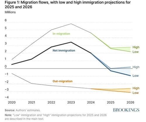 For 2026, net migration is projected to land somewhere between -925,000 to +185,000 and given the increasing restrictions, it will likely remain on the lower rather than the higher end of that prediction by the Brookings Institution. Green cards could fall to 490,000-575,000, temporary visas to 1.65-1.99 million, refugees are expected to remain stable at roughly 7,500 and overwhelmingly from South Africa. It is important to note, though, that the projections vary and the Congressional Budget Office (CBO) forecasts net immigration at 410,000 in 2025 and 570,000 in 2026. Though this is a major downward revision from earlier projections due to administrative crackdowns.