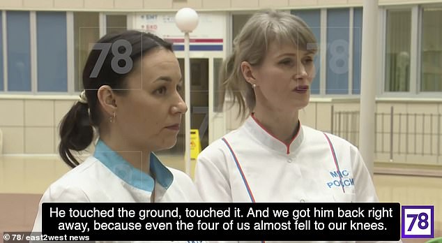 But nurses Anna Kabashova and Olga Artemyeva were quick to act, and used a woman's coat as a makeshift safety net, video shows.