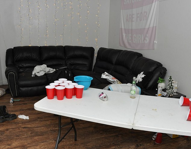 Inside the off-campus college house that was home to Mogen, Kernodle, Goncalves, and two survivors, Bethany Funke and Dylan Mortensen