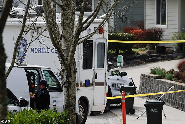 The psycho killer was gunned down a few doors down the cul-de-sac in Gig Harbor, Washington, at 9.33am on Tuesday by police who arrived seconds too late.