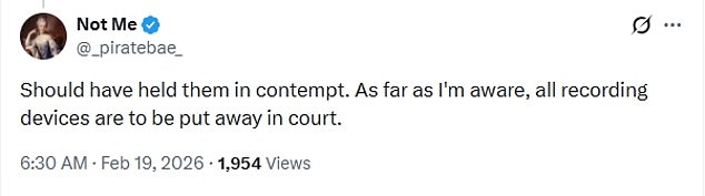 'Should have held them in contempt. As far as I'm aware, all recording devices are to be put away in court,' a third person said.