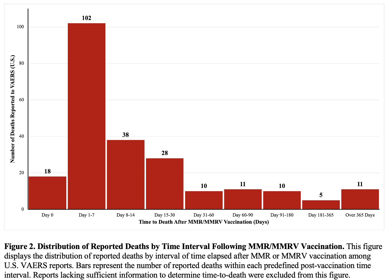 The highest concentration of deaths occurred in the immediate days following vaccination — not months or years later.