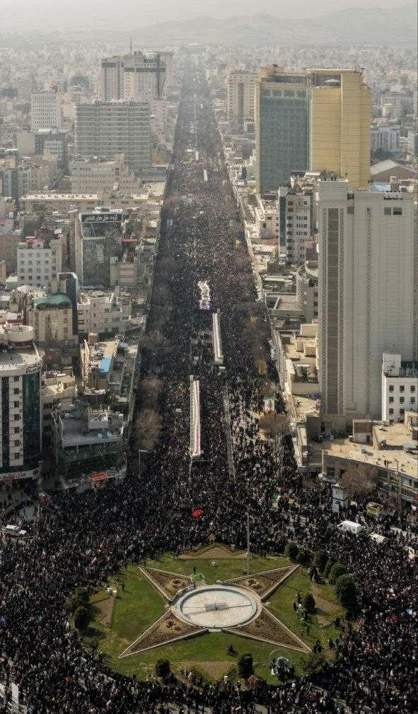 🇮🇷 Aerial view of Enghelab Street in Tehran massive crowds fill the capital as Iranians mark the 47th anniversary of the Islamic Revolution (22 Bahman).