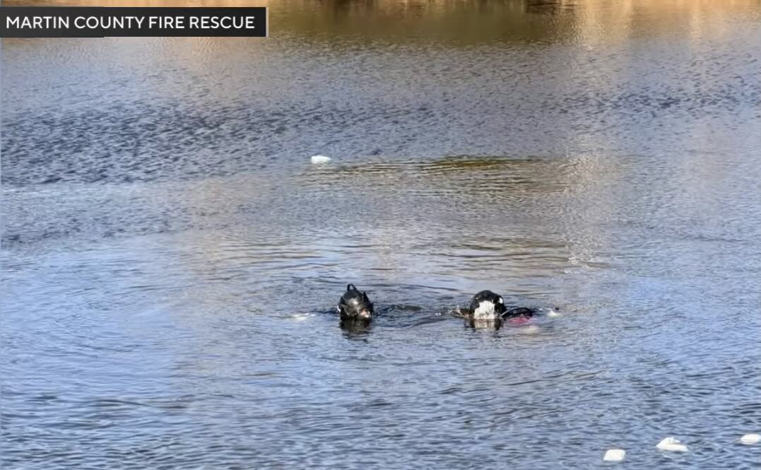 That’s when Good Samaritan on-scene Logan Hayes stripped off his excess layers, took a running jump, and swam to the car to open the back door before it too became submerged.