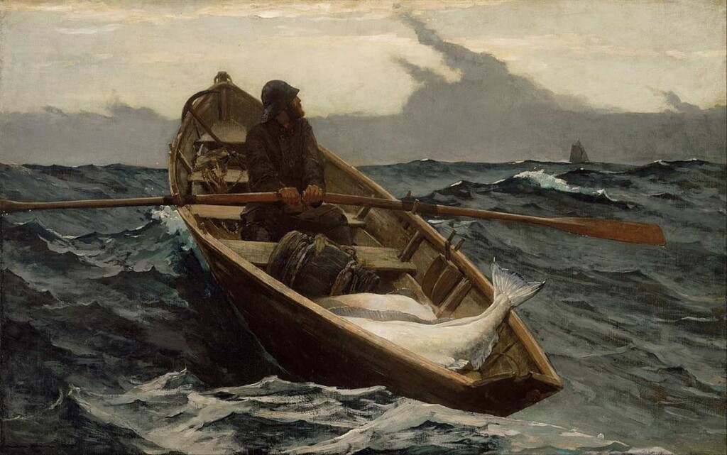 In 1883, Homer moved to Prouts Neck, Maine, and lived at his family’s estate in the remodeled carriage house seventy-five feet from the ocean. At fifty years of age, Homer had become a “Yankee Robinson Crusoe, cloistered on his art island” and “a hermit with a brush”. These paintings established Homer, as the New York Evening Post wrote, “in a place by himself as the most original and one of the strongest of American painters.”