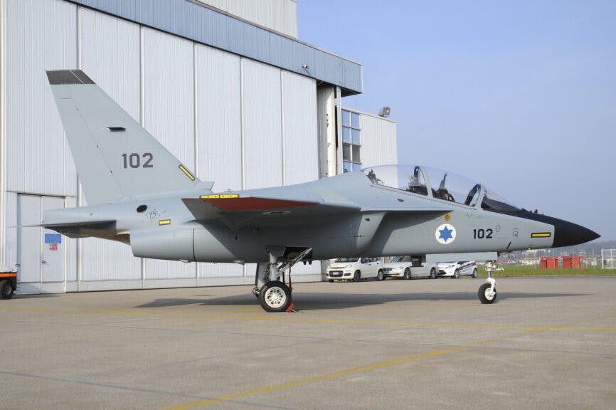 The first Alenia Aermacchi M-346I Lavi trainer of the Israeli Air Force taken at Venegono Airport, Italy. (Getty Images)