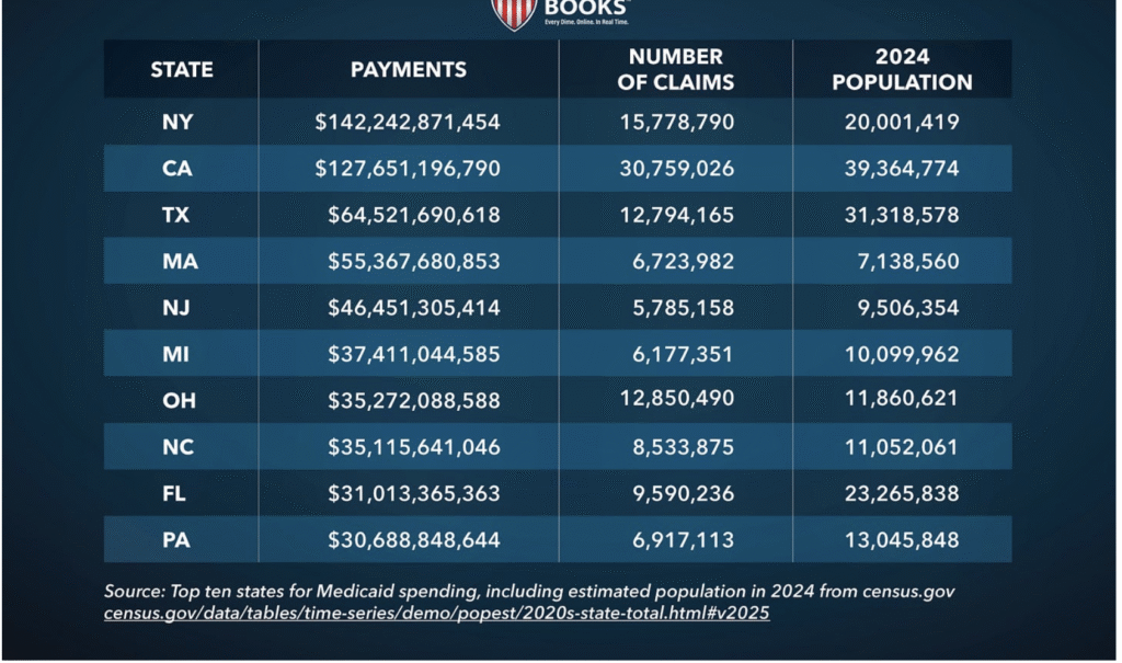 “The scheme is especially popular in New York State, which has seen $72.7 billion in such spending from 2018-2024,” the OTB analysis states. “That’s the most of any state, and accounts for roughly half of all New York Medicaid spending.”