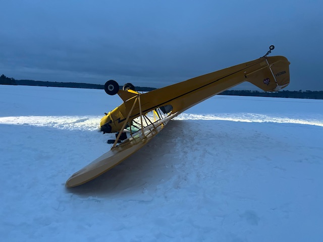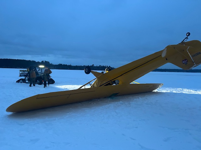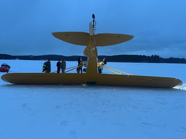 Upon arrival, responders traveled out onto the frozen lake and made contact with the pilot of a private plane that was lying upside down on the ice.