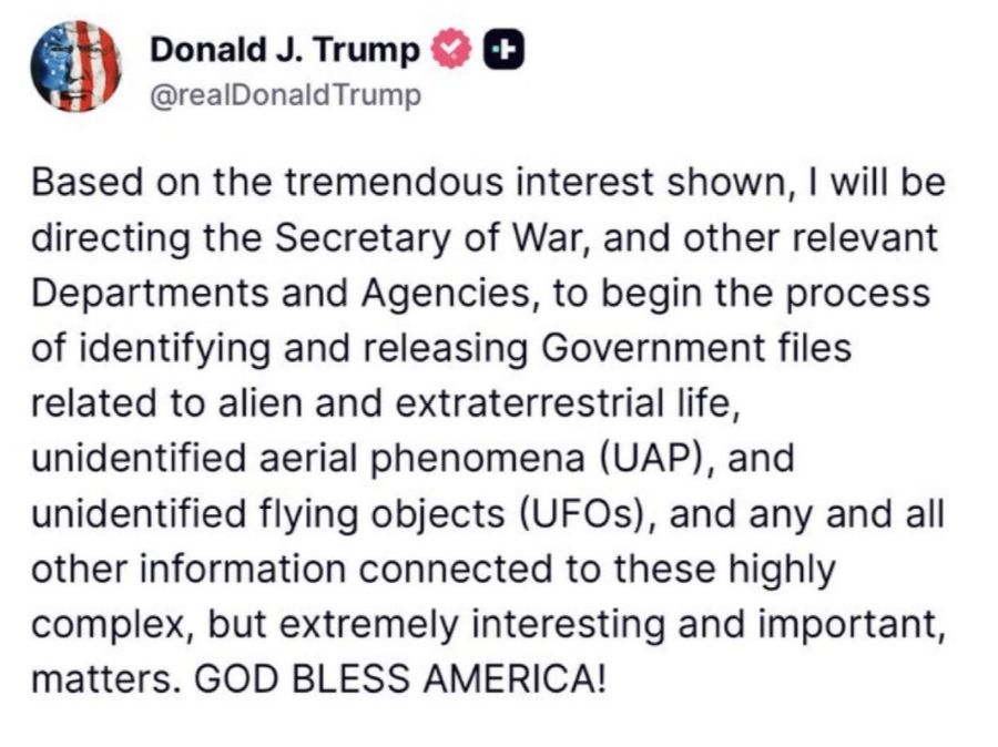 Trump’s move comes days after former President Barack Obama drew fresh attention to the topic by telling a podcaster that aliens are real. Obama later said he never saw proof of contact between humans and extraterrestrial life while in office, and said he believes life exists elsewhere largely because “statistically, the universe is so vast that the odds are good there’s life out there.”