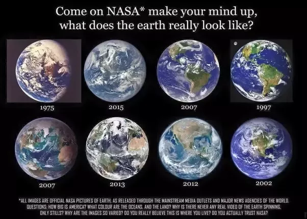 This image is real….or at least it’s “real” in the sense that these are all the different images of the Earth that NASA has given us for what our Earth looks like.