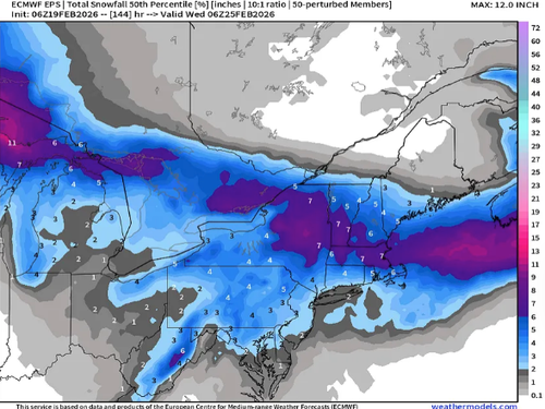 Ensembles: The ECMWF EPS at 06z (median) still NOT interested in the coastal storm having major impacts to the Mid-Atlantic or the Northeast.