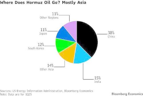 With flows through the Strait of Hormuz disrupted, the immediate impact will be higher Brent crude futures when markets open in New York this evening. The biggest pressure point, however, will be on China, which is the top buyer of Iranian seaborne crude and one of the most exposed major end markets for Hormuz-linked flows, meaning any prolonged disruption would further tighten Beijing's supplies.