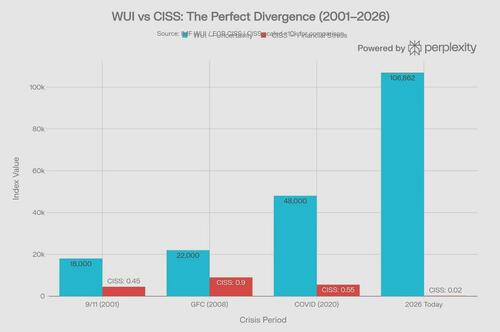 It is, in context, the signal of the century — evidence that the narrative fabric binding 143 economies together is more frayed than at any point in sixty years of data collection. That this signal coexists with a near-zero CISS and a tranquil VIX tells us nothing about the genuine strength of the system, and everything about the success of our policy-driven delusions.
