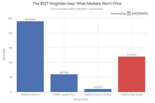 The $12 Trillion Knightian Gap: the unpriced vacuum of denial sitting between manufactured market calm and real-world uncertainty. When the Synthetic Rebar snaps, this gap doesn't close gradually — it closes in a single week of trading.