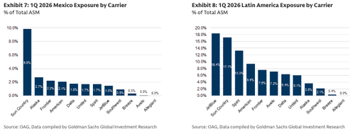 Bottom line: There were significant cancellations in select airports following the events in Mexico over the weekend; however, these cancellations were in-line with or lower than cancellations at airports impacted by Winter Storm Hernando. Separate from the cancellations over the last couple days, the larger question in our view is if there will be a lasting impact on demand. We take no view on the length of the unrest in Mexico. While not directly comparable, we note that other recent geopolitical events have had a short-lived impact, if any, on demand for travel. As such, while there could be an impact from recent events, we could see the dissipation of demand headwinds fairly quickly if the situation is resolved (Volaris, one of the largest airlines in Mexico, resumed normal operations Monday 2/23). In the short-term, Sun Country has the highest exposure to Mexico, with ~10% of 1Q 2026 capacity scheduled to fly to various airports in Mexico. We note that February and March in particular represent seasonally high demand months for North to South travel to warm weather destinations as various regions of the US have spring breaks over this period. It is possible that some trips planned for Mexico could instead be re-booked to a domestic warm weather destination or elsewhere in Latin America/the Caribbean if there are lingering concerns around Mexico over the next couple months.